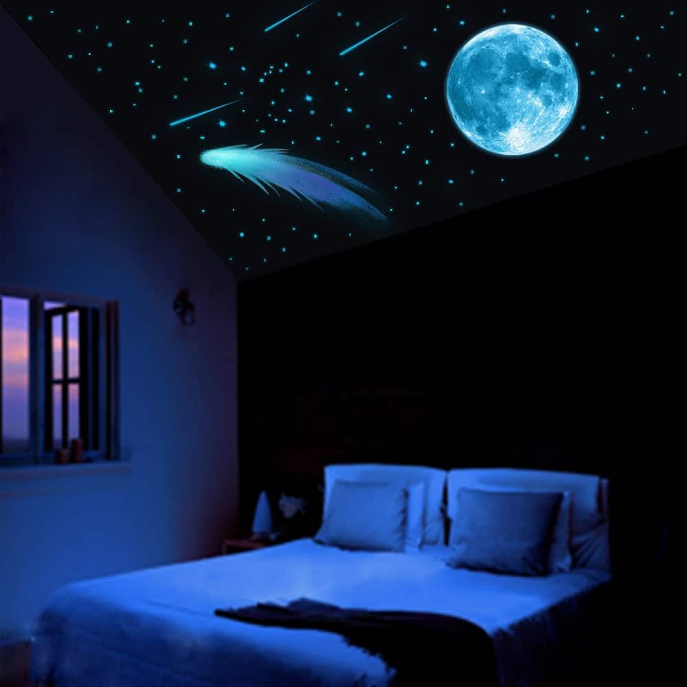 Crea un'atmosfera da sogno con gli Adesivi Murali Fluorescenti Blu Luna Stelle