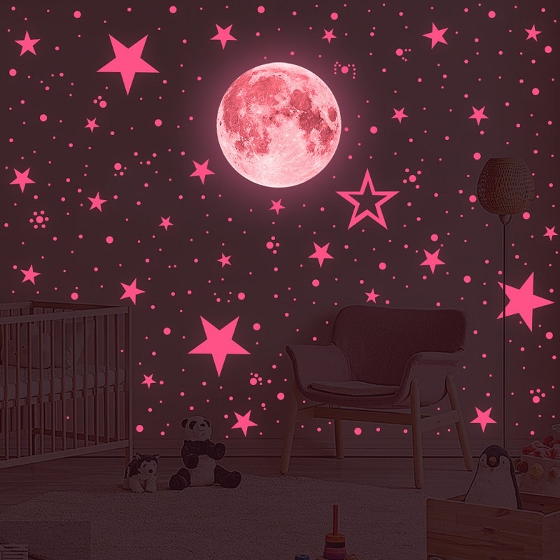 Rendi Ogni Notte Speciale con gli Adesivi Murali Fluorescenti Rosa Luna Stelle
