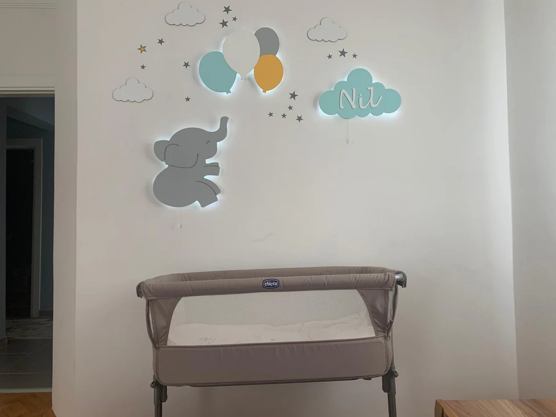 Applique da parete LED Elefante con Palloncini: Un Tocco di Magia per la Cameretta