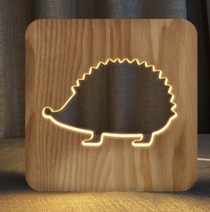 Illumina le tue notti con la Lampada da comodino design riccio in legno
