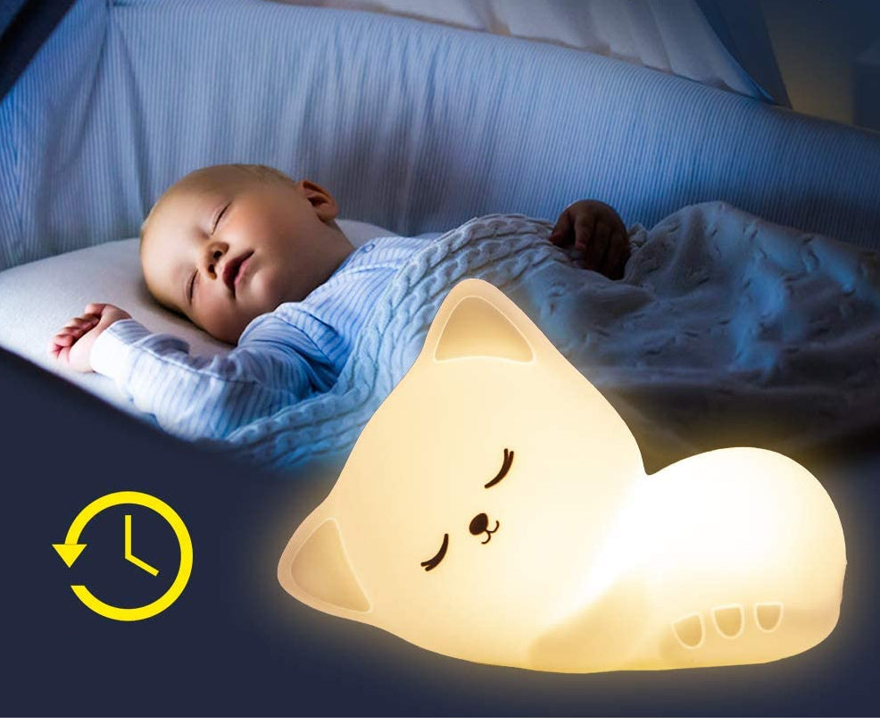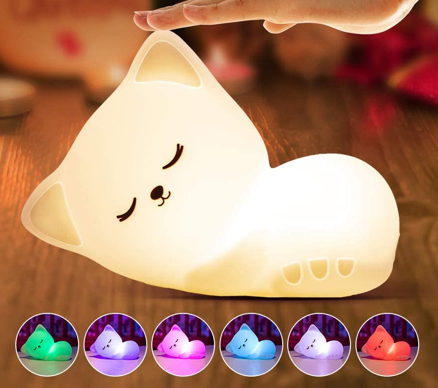 Regala un sorriso e un sonno sereno con la nostra Luce notturna gatto in silicone telecomandata.