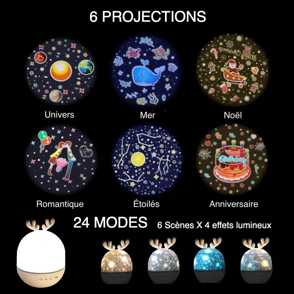 Immagina un soffitto cosparso di stelle scintillanti, pianeti misteriosi e lune luminose, mentre dolci melodie cullano il tuo piccolo nel sonno più profondo. Il nostro Proiettore Stelle Musicale per Neonati Bluetooth è più di una semplice lampada: è un'esperienza sensoriale completa, pensata per creare un ambiente sereno e incantato nella cameretta del tuo bambino. Con la sua proiezione vivida e la possibilità di riprodurre le tue ninne nanne preferite tramite Bluetooth, trasformerai ogni notte in un viaggio magico tra le stelle. Il design adorabile con le corna di renna lo rende anche un complemento d'arredo affascinante, perfetto per stimolare l'immaginazione e offrire comfort al tuo neonato.